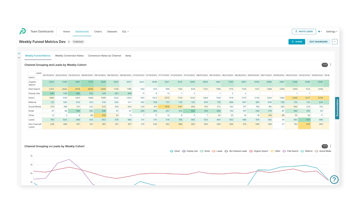 Let your customers gain deeper insights into business and operational metrics inside your application. Preset delivers interactive analytics capabilities in your product, enabling your customers to freely explore their data.